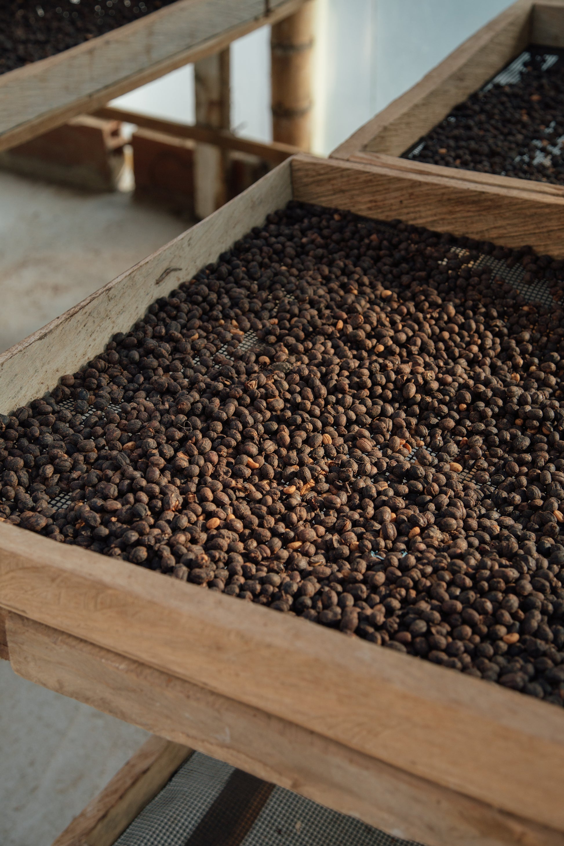The name Luna Azul, meaning “Blue Moon,” reflects the coffee’s striking notes of blueberry and dark chocolate. The process begins with a one-week open-tank fermentation in cherry. The coffee is then depulped without water, allowing the sticky, honey-like mucilage to remain intact. Finally, it’s dried on raised beds for 1–3 weeks, depending on the weather, until it reaches 11% moisture.